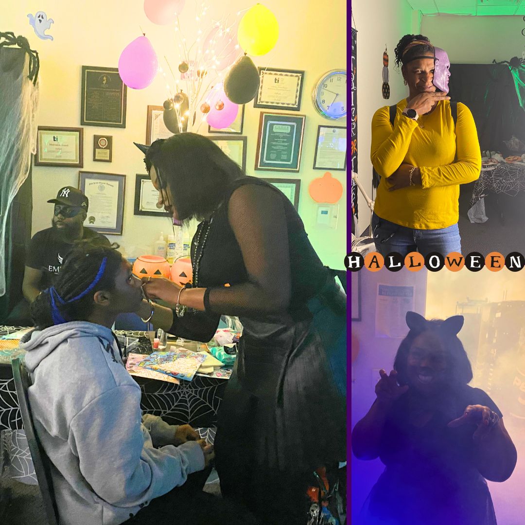 The children in our Treatment Home foster care program had a Spooktacular time at the Monster Mash party, thanks to the amazing efforts of Zaza Farrell, Founder of EmpowHER and Tyrell Cleveland, Director of Programming for EmpowHIM. They decorated our conference room scarily well and the kids enjoyed Halloween makeup and pumpkin decorating. Thanks also to Stop and Shop in Teaneck, NJ for donating pumpkins for the children to decorate, Families for Families for donating costumes and Yarelis Morel for the makeup. What a fun night!